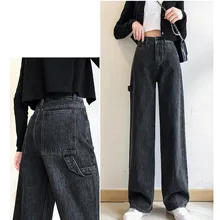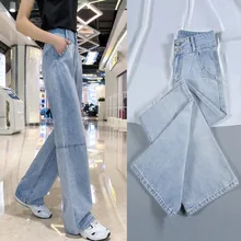 Style Split Hem Flare Denim Pants Women High Waist Casual Jeans Stacked Denim Pants